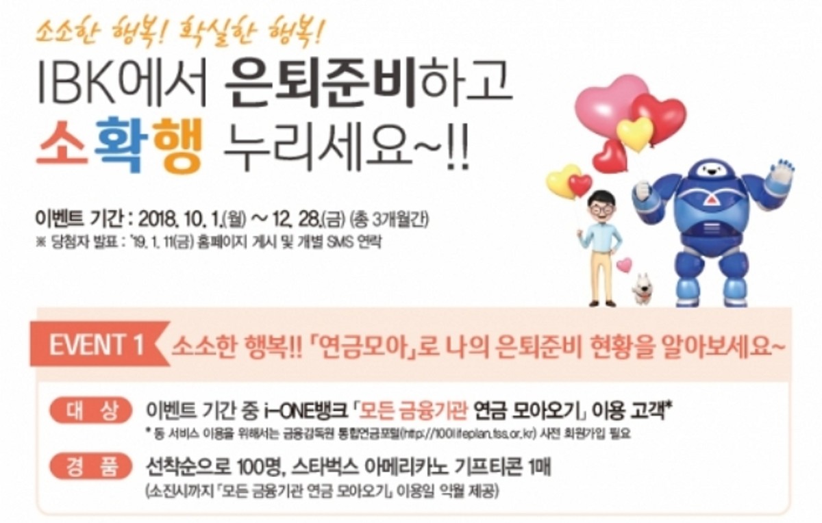 'IBK에서 은퇴준비하고 소확행 누리세요' 이벤트