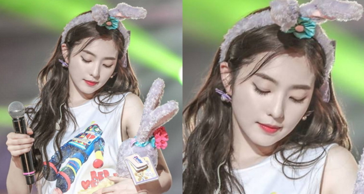 회색 토끼 머리띠를 쓴 아이린의 미모가 귀여운 인형처럼 빛이 났기 때문.
