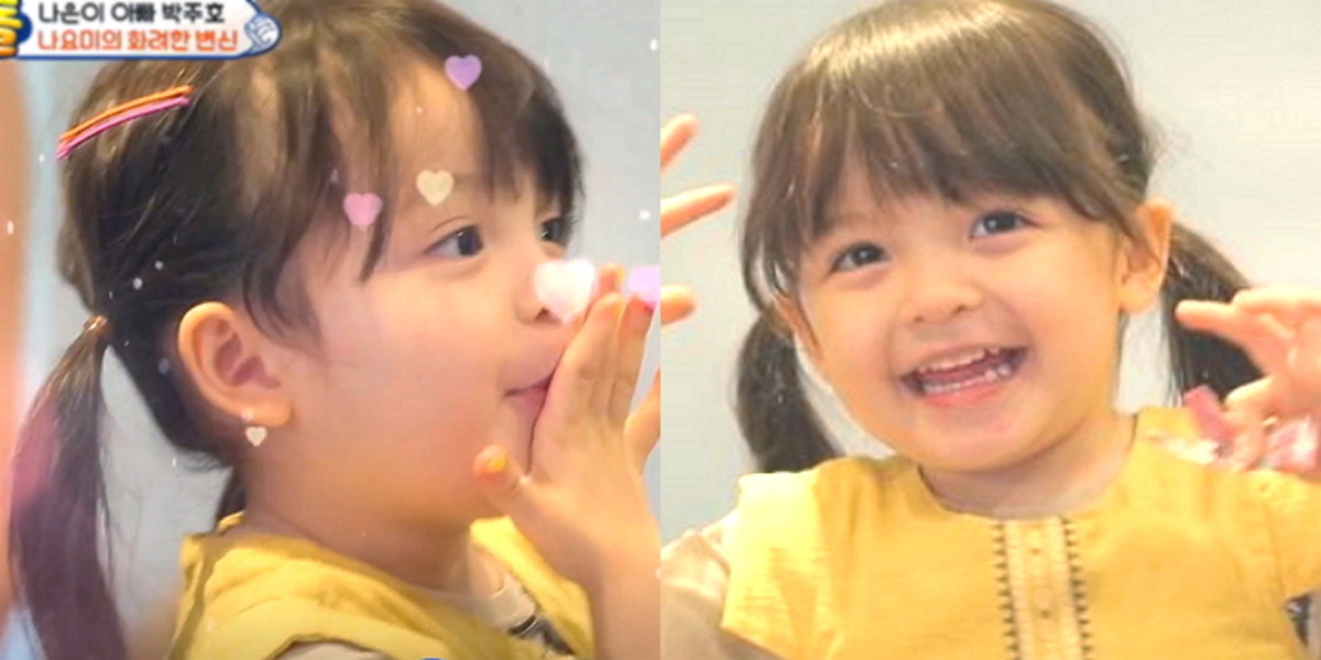 양갈래 머리를 한 채 상큼한 미소를 지으며 손 뽀뽀를 날리는 나은이의 모습은 사랑스러움을 자아냈다.