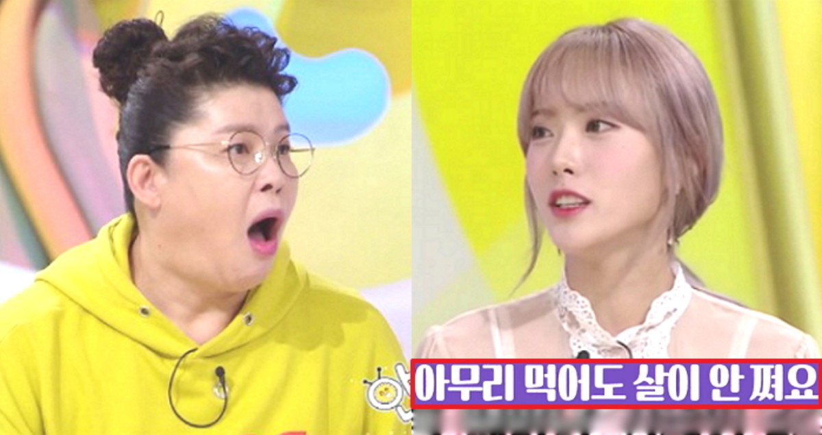 이때 MC 이영자는 "우주소녀가 먹어도 먹어도 살이 안찐다고 들었다"라고 말했다.