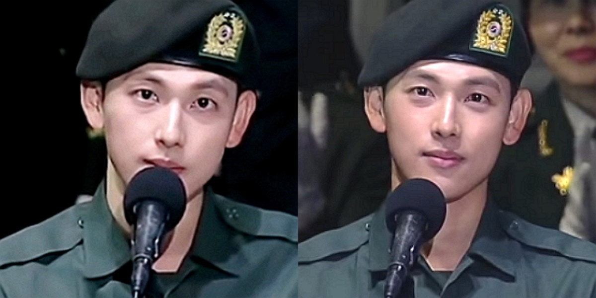 베레모에 군복까지 갖춰 입은 그는 늠름한 군인의 모습을 보여줬다. 복장과 헤어스타일은 영락없는 군인의 모습이지만, 그의 완벽 비주얼은 감춰지지 않았다.