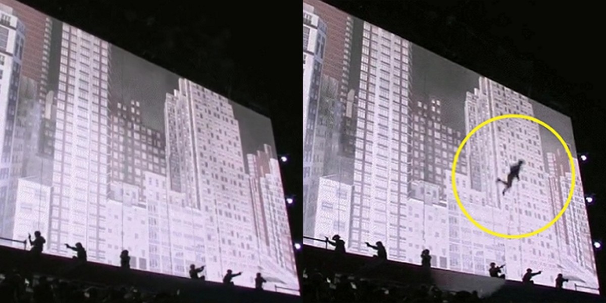 이때 6명이 무대 위로 하강하고 난 뒤 한 명의 장병이 무대 정중앙 앞쪽으로 빠른 속도로 떨어졌다. 다른 장병들과 하강 위치와 속도가 달라 무대 바깥 쪽으로 '쿵' 떨어지는 것처럼 보인다.