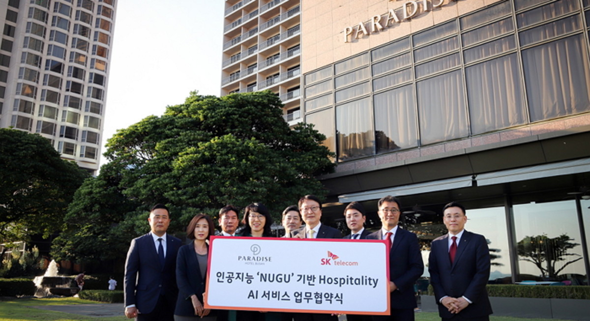 3일 SK텔레콤은 전날 파라다이스호텔 부산에서 양사 관계자들이 참석한 가운데 '인공지능 누구(NUGU) 기반 호텔 AI 서비스' 업무협약을 맺었다고 밝혔다.