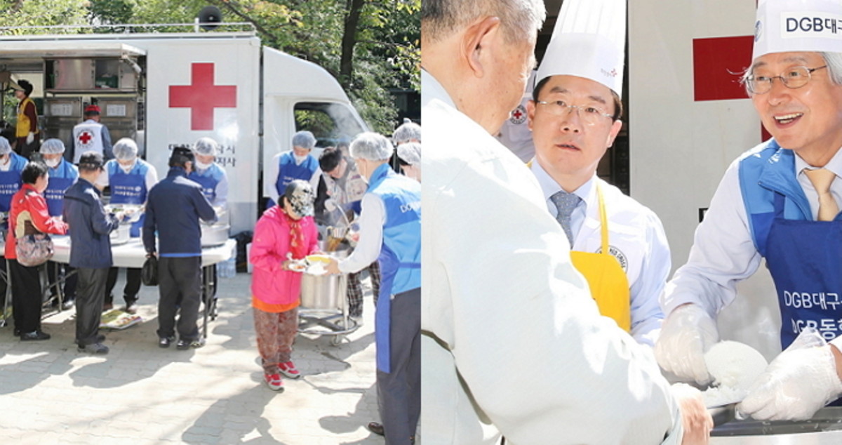 한편 DGB대구은행은 'DGB행복 dream day' 추진을 통해 대한적십자사 대구지사와 함께 사회공헌을 협약, 연간 급식 후원금 전달은 물론, 임직원들이 정기적으로 급식 봉사활동에 참여하고 있다.