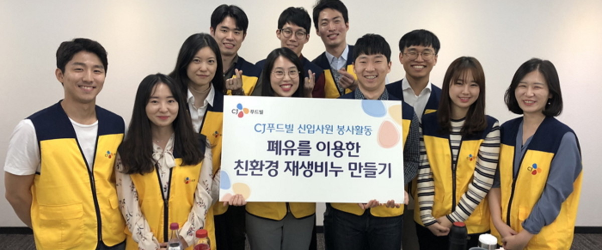 CJ푸드빌 관계자는 "폐유를 비누로 만들고 이를 기부하는 사회공헌활동을 통해 환경 보호에 대한 관심을 더욱 높이고자 했다"며 "신입사원들이 기업의 사회적 책임과 역할에 대해 생각할 수 있는 좋은 시간이 됐을 것"이라고 말했다.