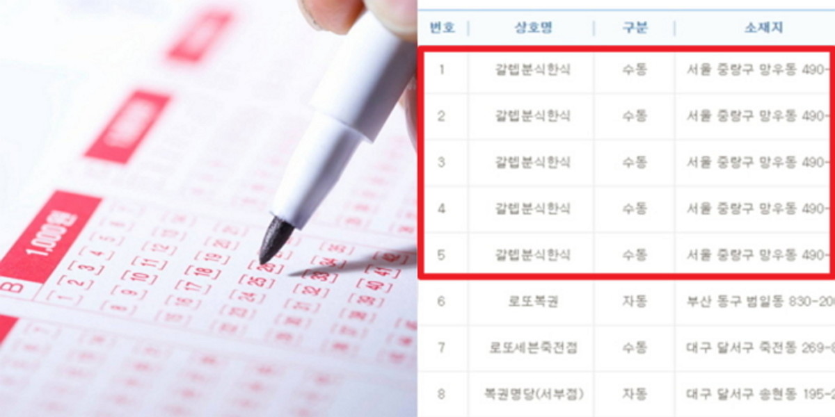 이 가운데 서울 중랑구 망우동에 위치한 '갈렙분식한식' 판매점에서 1등 당첨자가 5명이 배출돼 많은 이들의 관심을 받고 있다.
