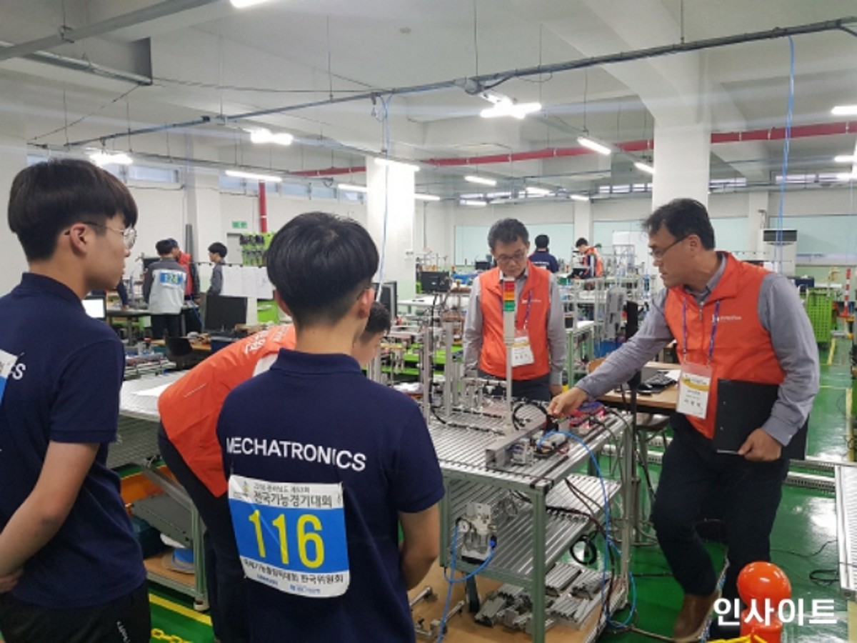 ‘제53회 전국기능경기대회’ 제1일차 경기에서 심사위원들이 메카트로닉스 직종에 참가한 선수들의 과제를 채점하고 있다. / 사진 제공 = 삼성전자