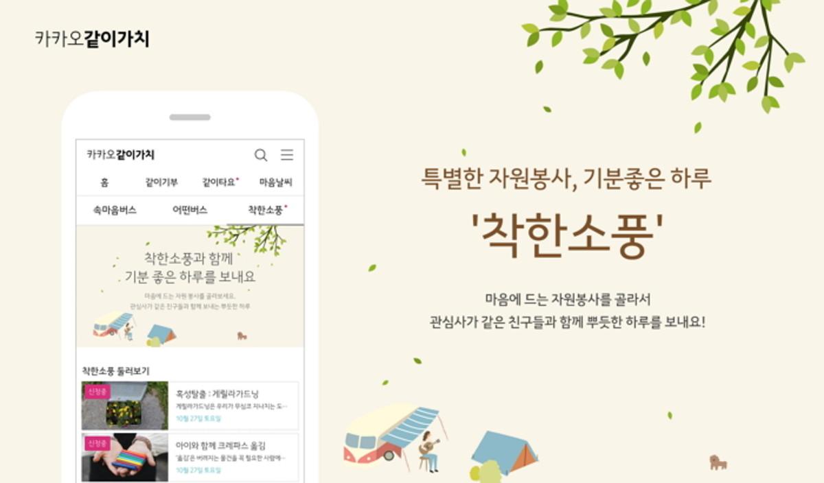 [인사이트] 김지현 기자 = 카카오가 사회공헌 플랫폼인 '카카오같이가치'에 자원봉사 지원 프로그램인 '착한소풍' 서비스를 오픈했다.