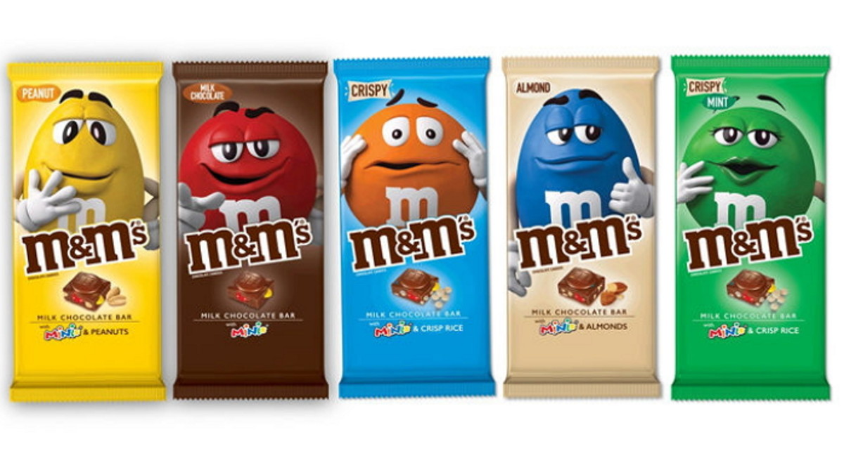 M&M이 공개한 사진에는 총 5가지의 맛을 나타내는 색깔이 담긴 초콜릿 바가 담겨있다.