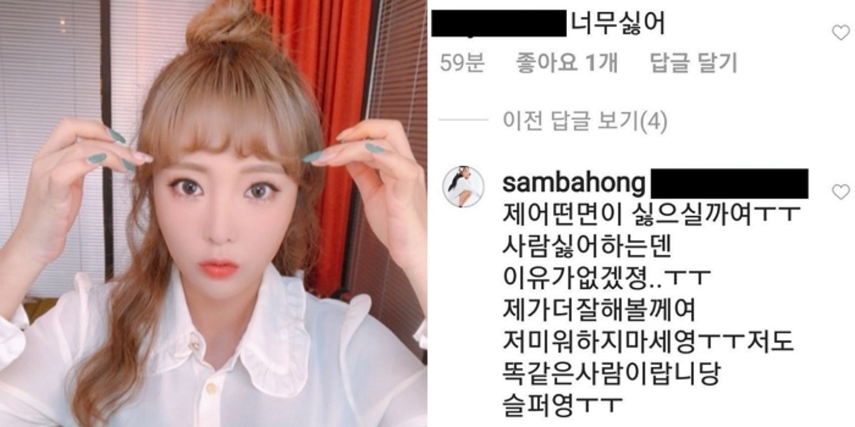 본인의 계정에 달린 악플을 본 홍진영은 "저의 어떤 면이 싫으실까요ㅠㅠ"라며 덧글을 남겼다.