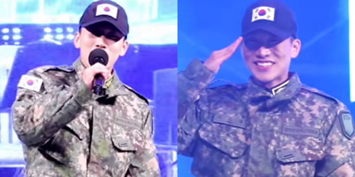 우왕좌왕한 끝에 무대를 내려가던 중 서은광은 팬들을 향해 거수경례를 하며 늠름한 군인의 자태를 보여줬다.