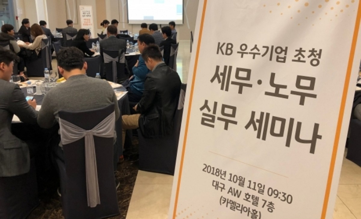 [인사이트] 장영훈 기자 = KB국민은행은 지난 11일 대구 AW 호텔과 12일 부산 해운대 그랜드 애플에서 대구와 부산 지역의 중소기업 재무담당 임직원 100여명을 대상으로 '중소기업 임직원 초청 세무·노무 세미나'를 개최했다고 13일 밝혔다.