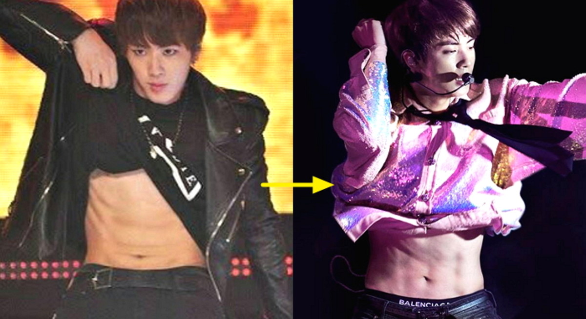 최근 각종 온라인 커뮤니티와 SNS 등에는 콘서트 무대 중 격렬한 춤사위에 의도치 않게(?) 상의 노출을 해버린 방탄소년단 진의 모습이 담긴 사진이 올라와 눈길을 끌었다.