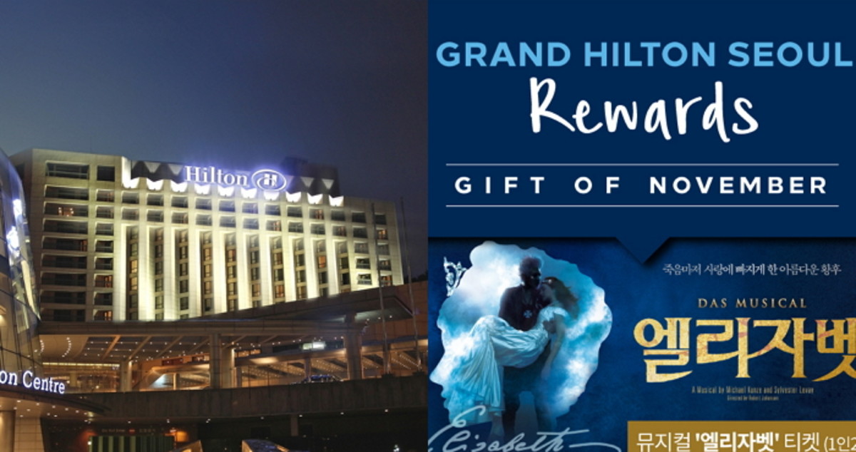 이번 10월의 '그랜드 힐튼 서울 리워즈'에서는 뮤지컬 '엘리자벳' 티켓을 선물한다.