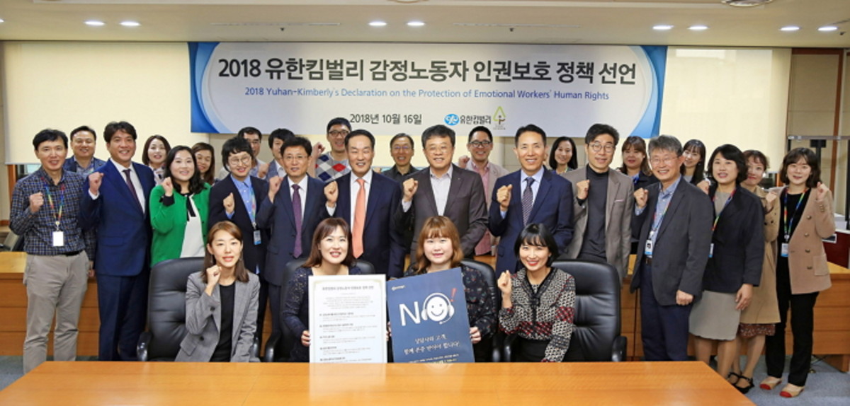 최규복 대표이사는 "인권보호와 안전은 유한킴벌리가 추구하는 기본적인 가치이며, 그런 의미에서 감정노동자를 존중하고 보호할 감정노동보호법 시행을 환영한다"고 말했다.