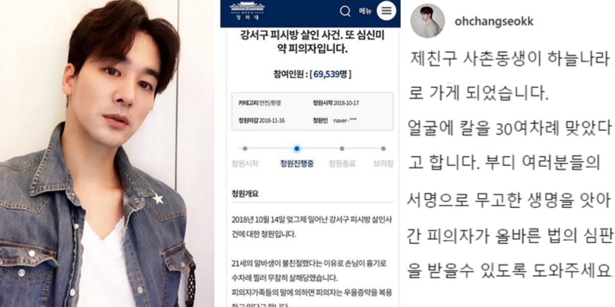 지난 17일 배우 오창석은 자신의 SNS에 '강서구 피시방 살인사건. 또 심신미약 피의자입니다'라는 제목의 국민청원을 캡처한 사진 한 장을 게재했다.