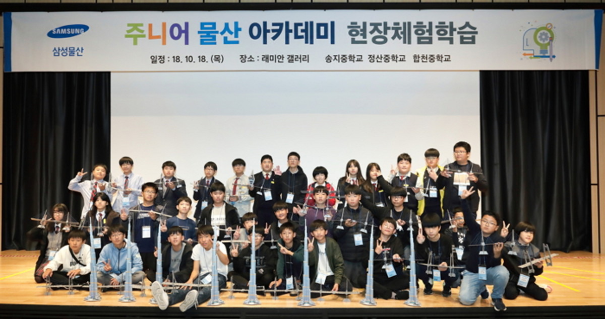 '주니어 물산 아카데미'는 중학교 자유학기제와 연계해 미래세대의 직업체험, 진로개발을 지원한다는 취지에서 개발된 삼성물산의 대표 사회공헌 프로그램이다.