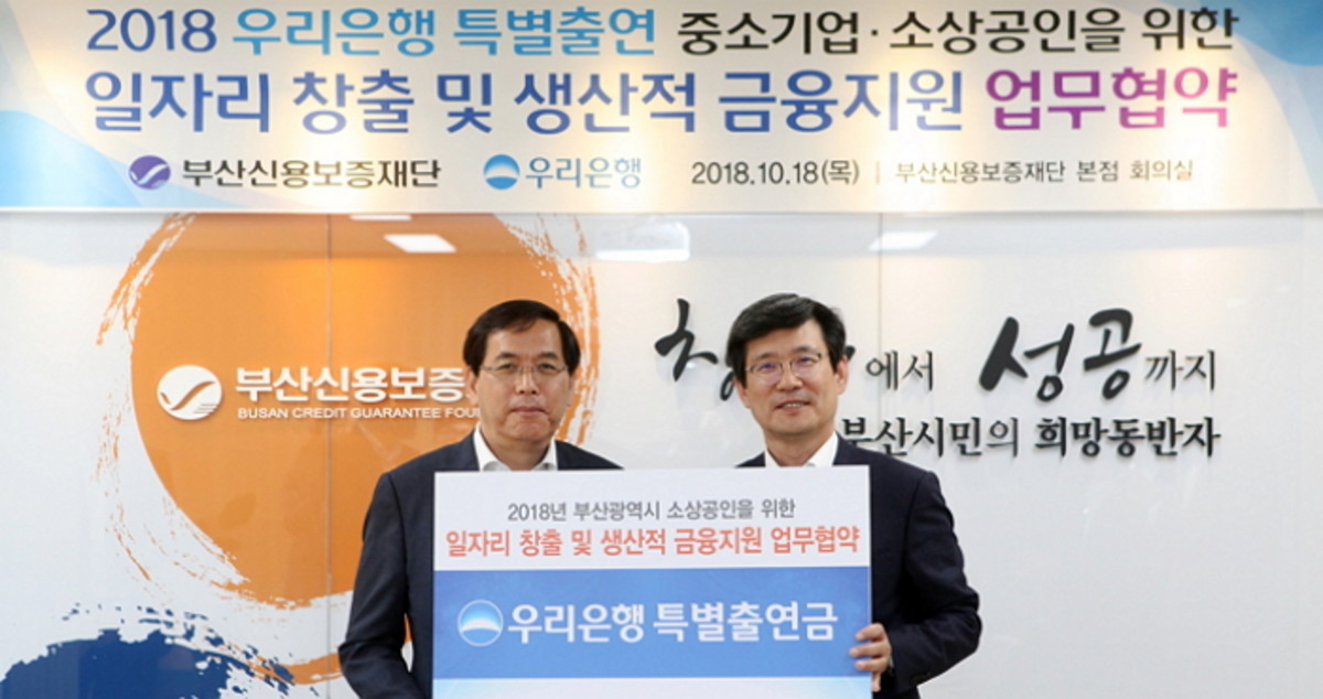이번 협약을 통해 우리은행은 부산신용보증재단에 10억원을 특별출연하고, 재단에서 발급한 150억원 규모의 보증서를 담보로 대출을 지원한다.