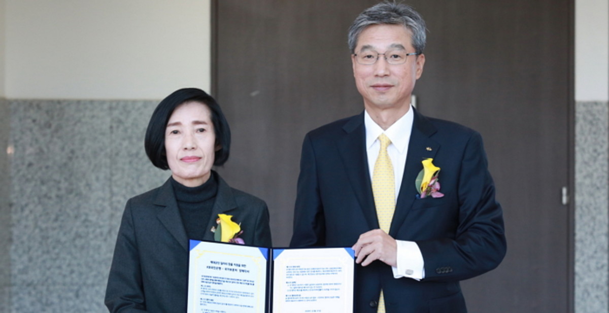 KB국민은행과 국가보훈처는 19일 일산 킨텍스에서 열린 '2018 중Ÿ장기복무 제대군인 일자리박람회'에서 업무협약(MOU)을 체결하고 '제대군인 일자리 창출 지원'을 위해 협조할 것을 약속했다. (좌) 피우진 국가보훈처장, (우) 허인 KB국민은행장 / 사진 제공 = KB국민은행