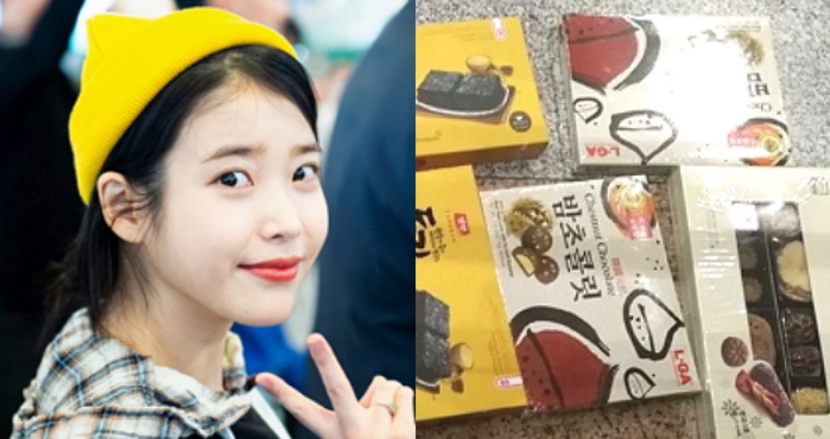 아이유는 공항에서 자신을 기다려준 중국팬들에게 감사한 마음을 전하고자 여러 종류의 한국산 식품을 선물했다.