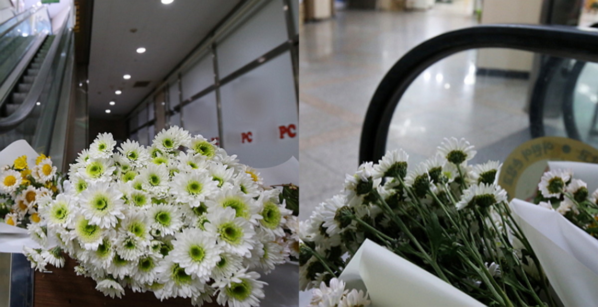 인사이트가 찾아간 현장에는 국화꽃이 놓여 있었다. 사람들은 현장에 놓인 국화꽃 앞에서 묵념을 하며 청년의 죽음을 기렸다.