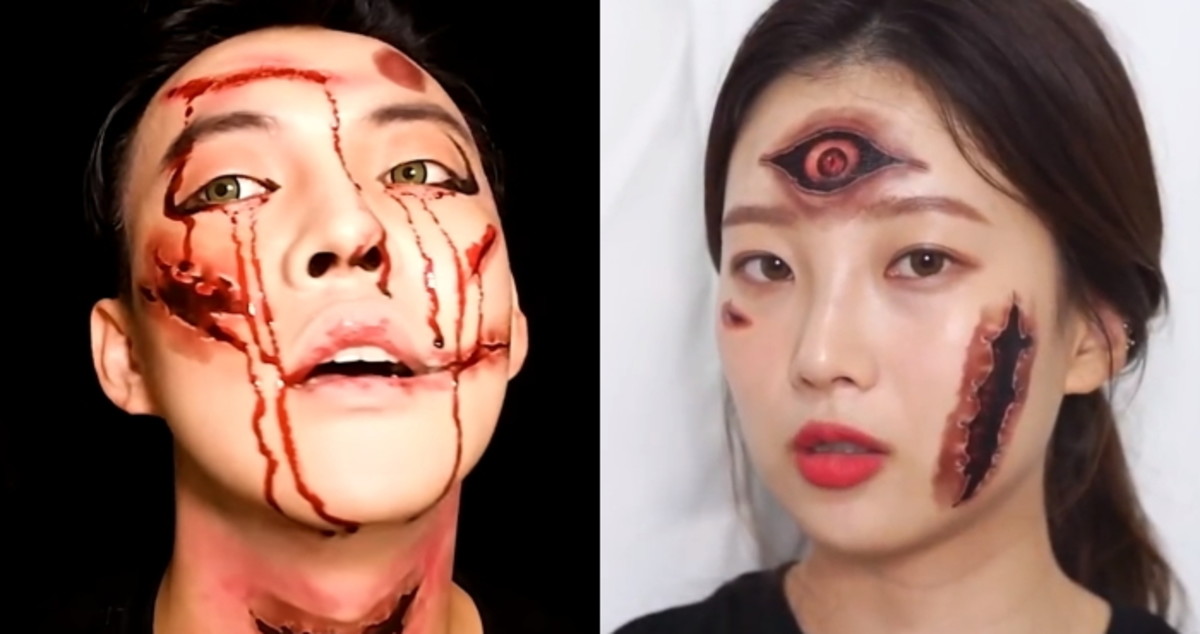 마지막으로 20~30초 정도 기다린 후에 종이를 떼어 내고 건조시키면 완벽한 할로윈 분장 끝.