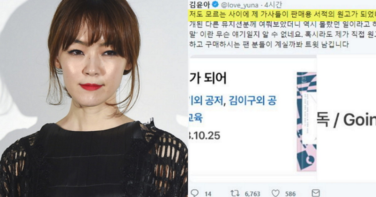 지난 19일 김윤아는 자신의 트위터 계정에 "저도 모르는 사이에 제 가사들이 판매용 서적의 원고가 됐네요. 책에 소개된 다른 뮤지션분께 여쭤보았더니 역시 몰랐던 일이라고 하시는데…"로 시작되는 짧은 글을 남겼다.
