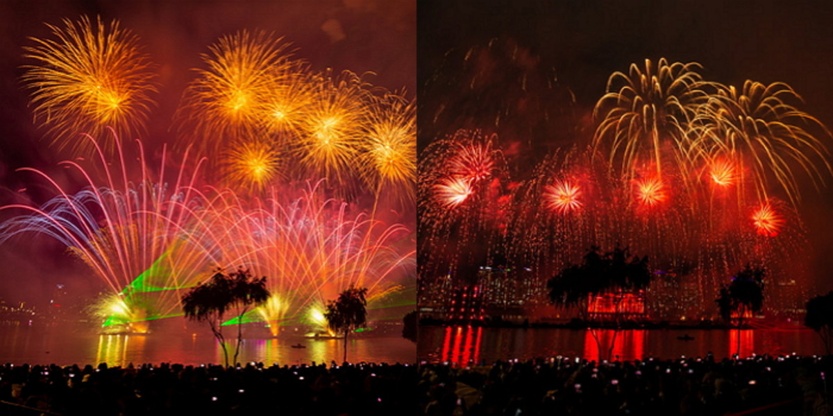 시민들은 음악과 불꽃에 맞춰 감상에 젖기도 하고 흥을 끌어올리기도 했다.