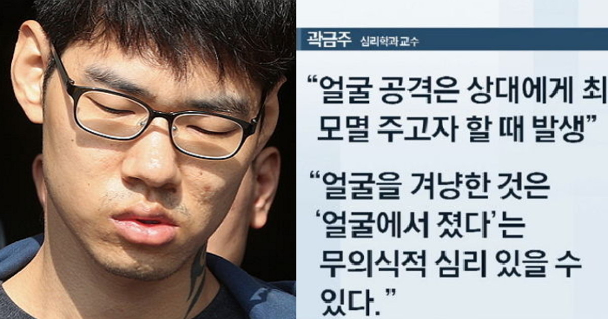 곽 교수는 "얼굴 공격은 상대에게 최대한 모멸감을 주고자 할 때 발생된다"며 "얼굴을 겨냥한 것은 '얼굴에서 졌다'는 무의식적 심리가 있을 수 있다"고 주장했다.
