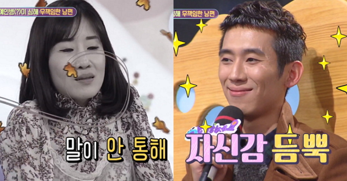 아내는 "밖에 다니면 남편이 '저 여자가 나 쳐다봐. 나 좋아하나 봐'라고 한다"며 남편이 '연예인 병'에 걸린 것 같다고 말했다.