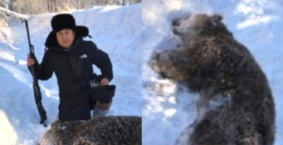 쓰러진 곰 뒤에서 커다란 장총을 들고 환하게 웃고 있는 사진과 함께 그는 "오늘 사냥에서 러시아 불곰! 250kg 좋은 분들과 함께!"라는 글을 남겼다.