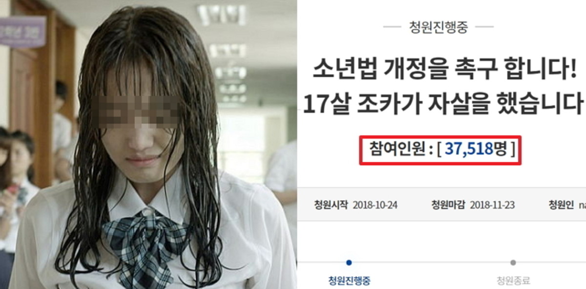 지난 24일 청와대 국민청원 게시판에는 '소년법 개정을 촉구합니다! 17살 조카가 자살했습니다'라는 제목의 글이 게재됐다.