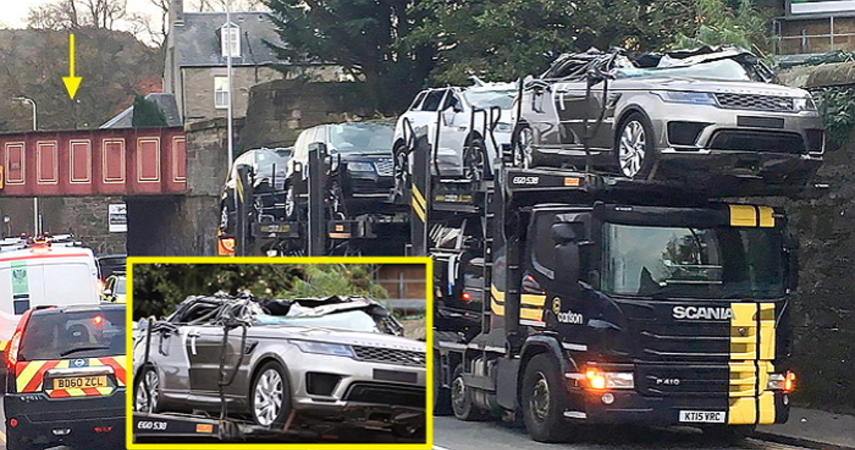 그러나 그 결과는 '처참'했다. 견인차 상단에 있던 차량 4대의 지붕이 교량에 완전히 갈려 나간 것이다.