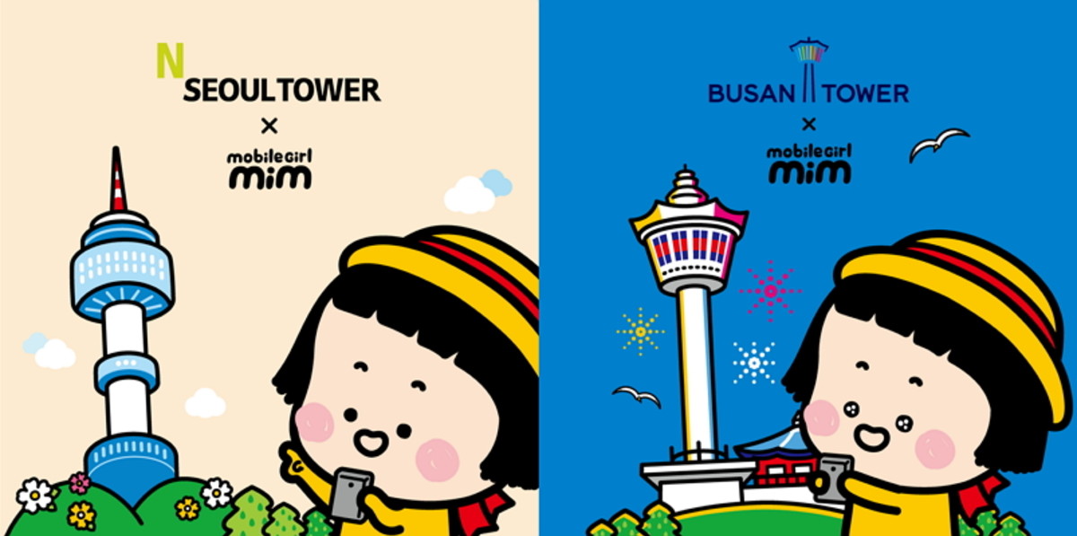 26일 CJ푸드빌이 운영하는 N서울타워와 부산타워는 유명 이모티콘 캐릭터인 '휴대폰 소녀, 밈'과 협업해 다양한 이벤트를 펼친다고 밝혔다.
