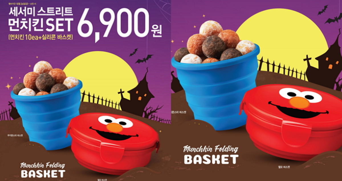 26일 던킨도너츠는 먼치킨 10개를 구매하면 '먼치킨 폴딩(Folding) 바스켓'을 3,900원에 증정하는 '세서미 스트리트 먼치킨 세트' 프로모션을 진행한다고 밝혔다.