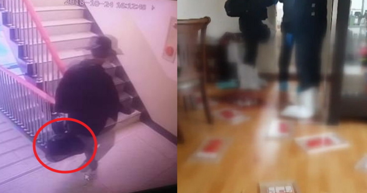 CCTV 화면에서 용의자는 큰 가방을 들고 계단을 올랐다. 용의자의 상반신이 가방 반대쪽으로 치우쳐 있는 것을 봤을 때 가방의 무게가 상당한 것으로 보인다.