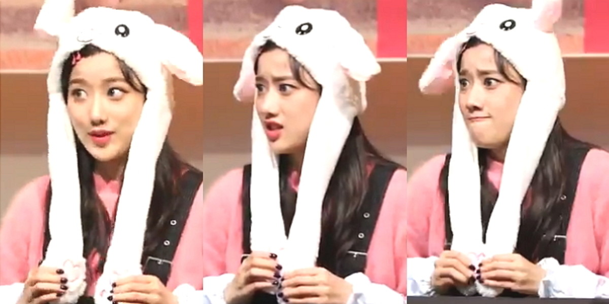 팬에게 선물 받은 토끼 모자를 쓴 이나은은 모자에 달린 토끼 귀를 팔락거리며 뿔난 마음을 표현했다.