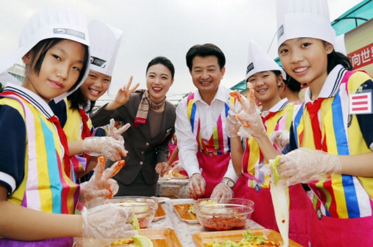 이날 행사에서는 현직 중국인 캐빈 승무원이 진행하는 직업 특강도 진행됐다. 주중한국문화원 주최로 학생들이 김치를 직접 만드는 시간도 가졌다.