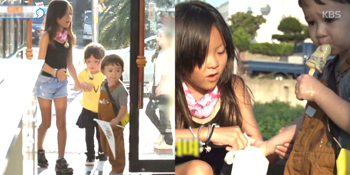 어느새 무리의 '첫째'가 된 사랑이. 그는 박주호 딸 박나은과 샘 해밍턴 아들 윌리엄을 데리고 아이스크림을 사러 갔다.
