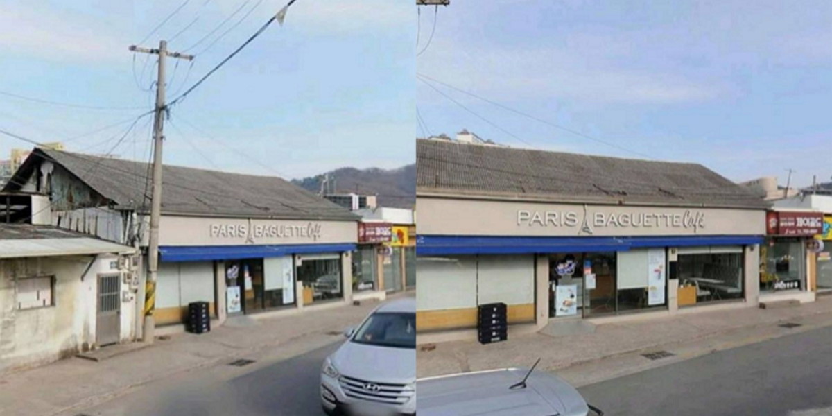 사진 속 파리바게뜨는 옛 정취가 물씬 풍기는 낮은 건물에 입점해있다.