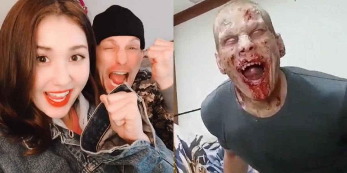 해당 영상에는 영화 촬영을 위해 좀비 분장을 받고 있는 매튜 다우마의 모습이 담겼다.