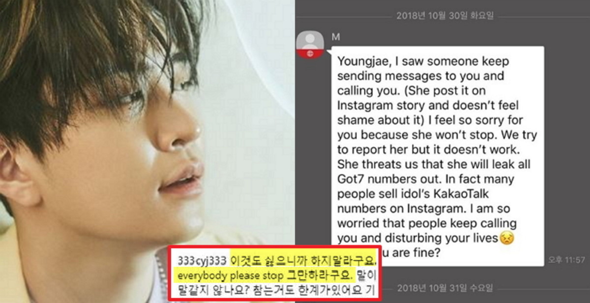 메시지를 보낸 이는 "누군가가 갓세븐 멤버들의 전화번호를 누출하려고 하며, 메시지와 전화를 계속하는 것을 봤다"며 우려를 표했다.