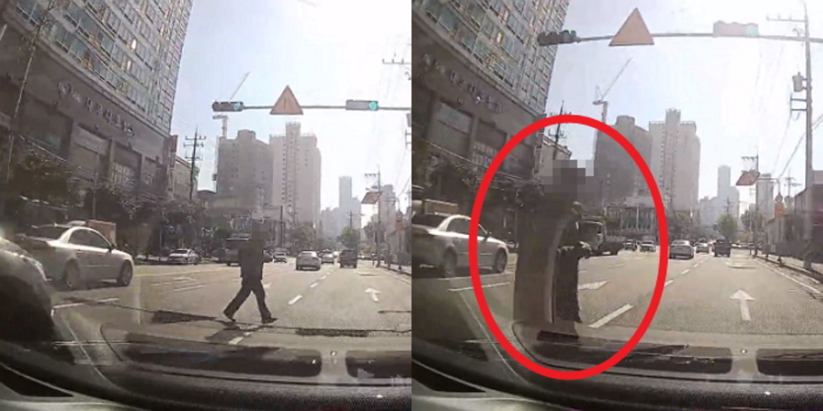 눈 깜짝할 새 벌어진 상황에 A씨는 급하게 핸들을 틀었으나 노인은 사이드 미러 부분을 충격한 후 쓰러졌다.