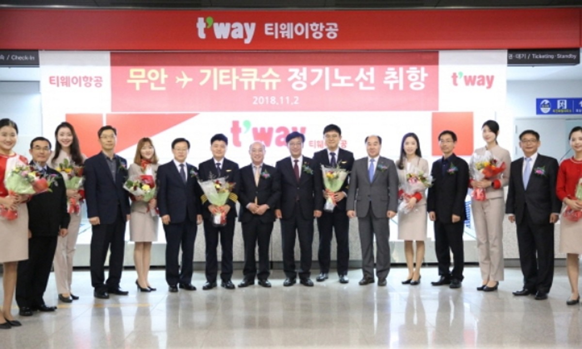 티웨이항공은 지난 2일 무안국제공항 여객터미널에서 박병호 전라남도 행정부지사, 장영식 무안군 부군수, 정상국 한국공항공사 무안지사장, 조현근 티웨이항공 정비본부장, 고혁 티웨이에어서비스 대표이사 등이 참석한 가운데 무안-기타큐슈 정기 노선의 신규 취항식을 가졌다.