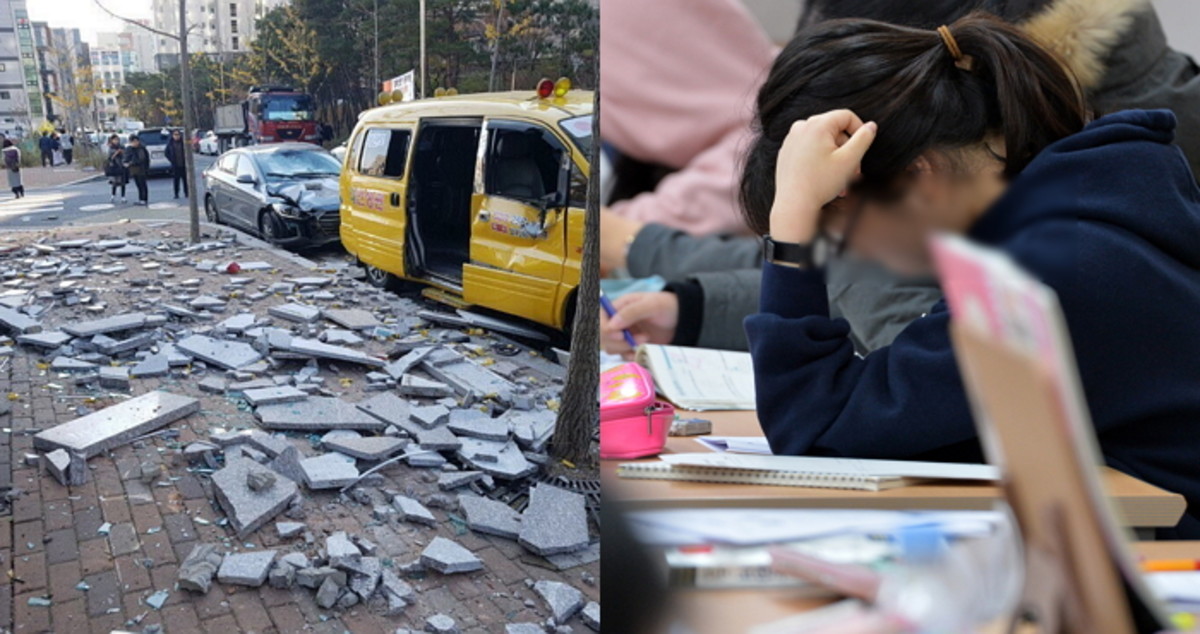 당시 교육부는 지진으로 인한 건물의 균열, 여진 등 학생들의 안전과 수험생들의 형평성을 고려해 수능을 연기했었다.