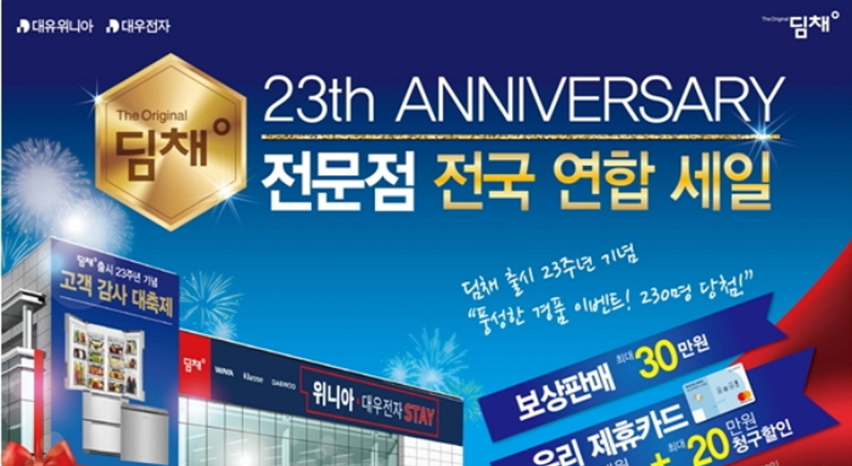 5일 대유위니아서비스는 오는 30일까지 전국 200여개 전문점에서 '딤채 출시 23주년, 전국 연합 세일'을 시작한다고 밝혔다.