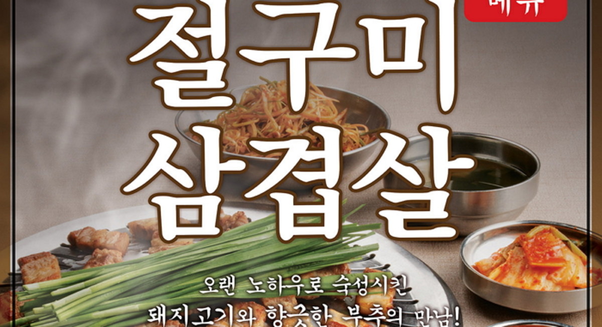 새마을식당의 이번 신메뉴 '절구미삼겹살'은 새우젓에 절여 한층 더 부드럽고 고소워진 삼겹살을 향긋한 부추와 함께 구워 먹는 메뉴다.