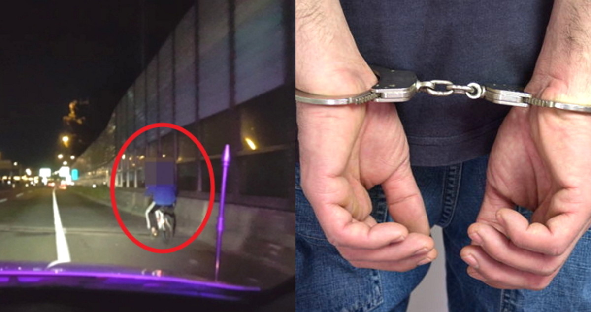 차가 쌩쌩 달리는 고속도로에서 위험천만하게 달리는 자전거를 본 시민들은 즉시 경찰에 신고했다.
