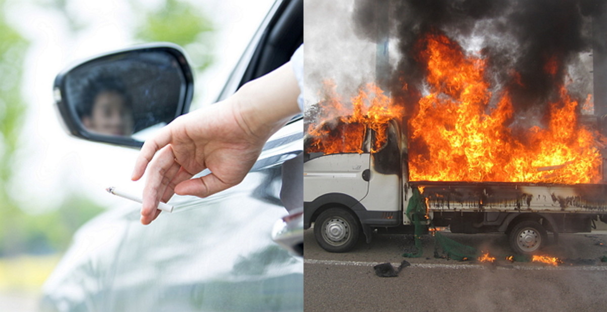 [인사이트] 디지털뉴스팀 = 달리는 옆 차에서 날아온 담배꽁초가 1t 트럭 한 대를 완전히 불태웠다.