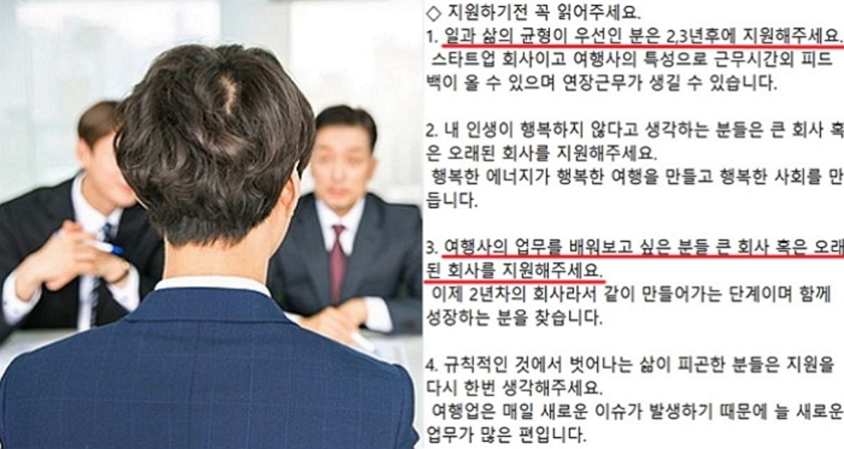 거기다 업무를 배우고 싶다면 큰 회사 혹은 오래된 회사를 지원해달라고 적었다.